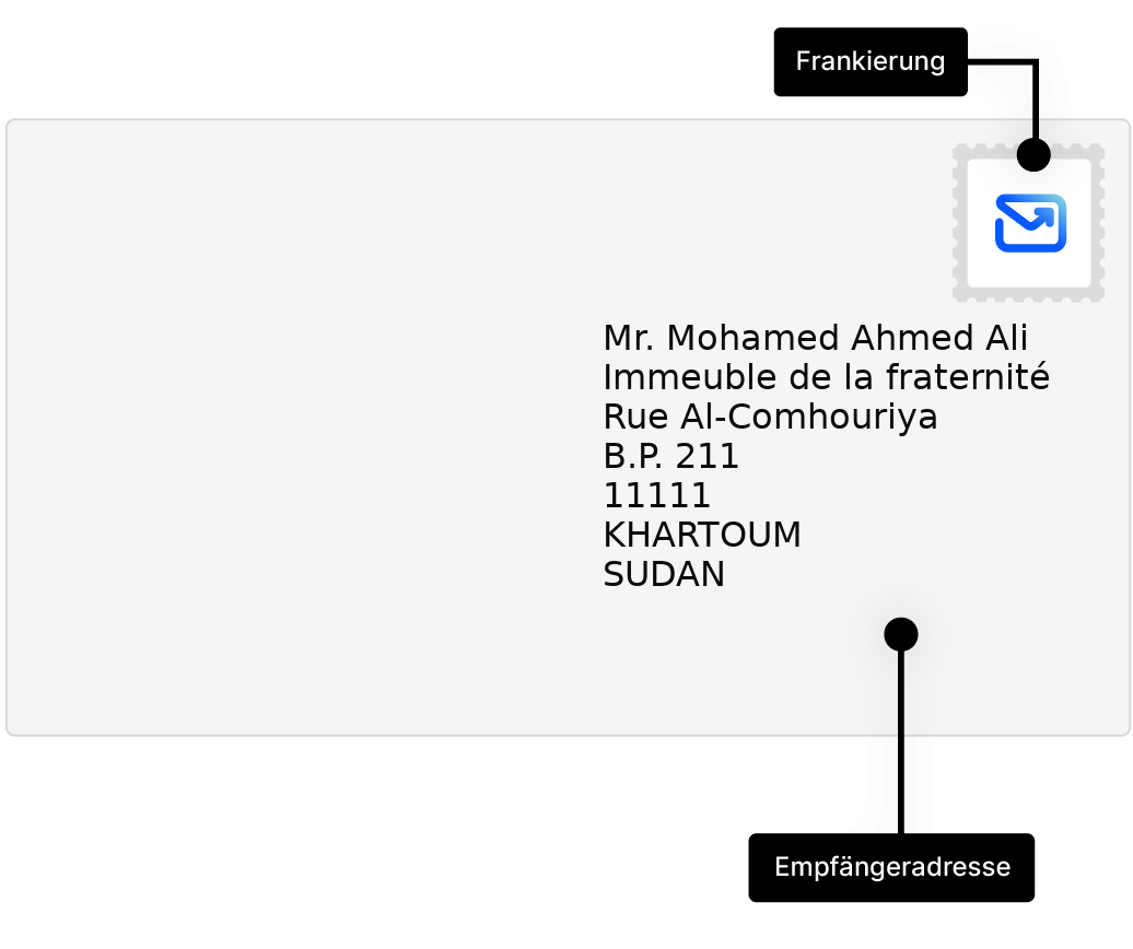 Erfahren Sie, wie Sie Briefe nach Sudan korrekt adressieren und versenden - mit Adressbeispielen und praktischen Tipps.