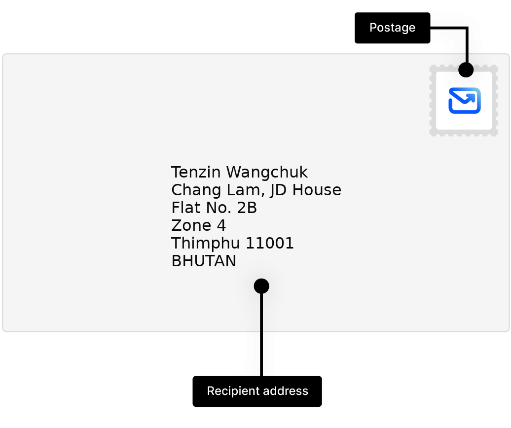 Here’s what a typical address in Bhutan looks like for postal mail.