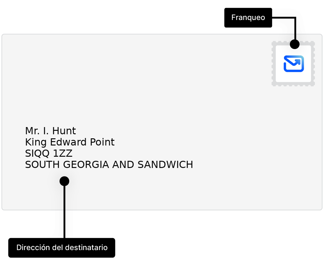 Aprenda a escribir y enviar cartas para Georgia del Sur y Sandwich, con ejemplos de direcciones y muchos consejos.