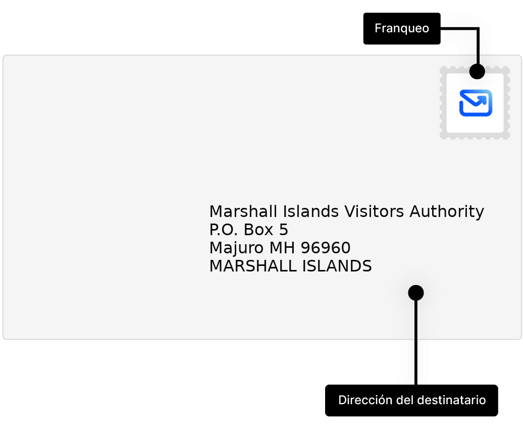 Aprenda a escribir y enviar cartas para Islas Marshall, con ejemplos de direcciones y muchos consejos.