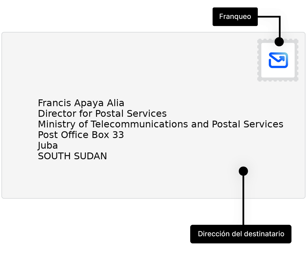 Aprenda a escribir y enviar cartas para Sudán del Sur, con ejemplos de direcciones y muchos consejos.