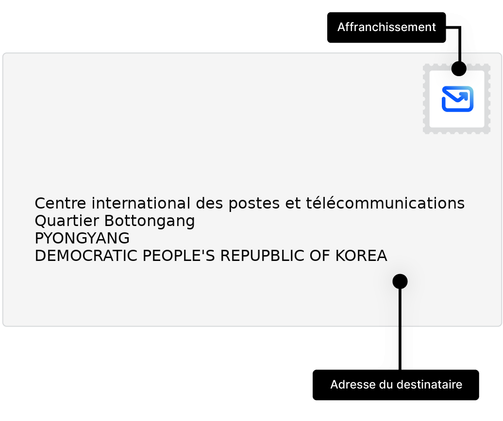 Apprenez à adresser et envoyer des lettres vers Corée du Nord, avec des exemples d'adresses et conseils pratiques.
