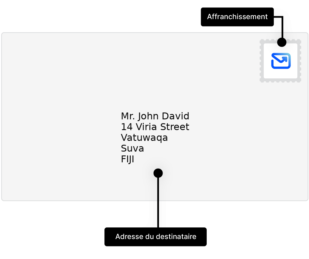 Apprenez à adresser et envoyer des lettres vers Fidji, avec des exemples d'adresses et conseils pratiques.