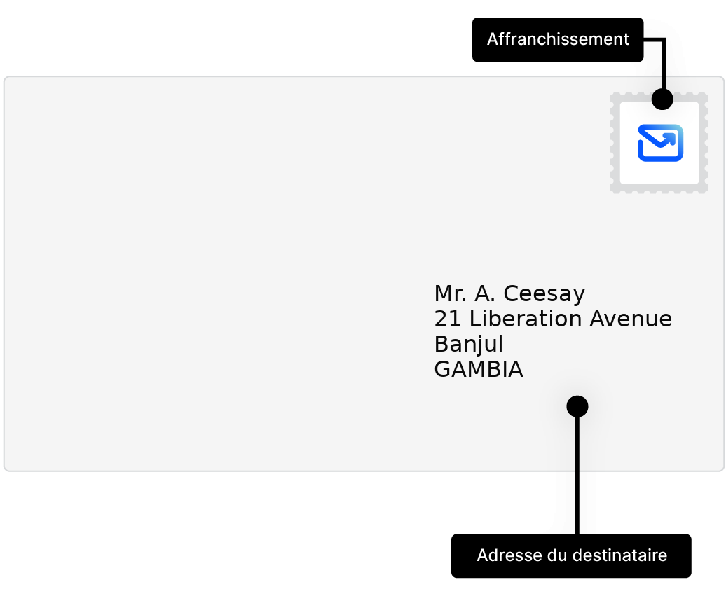 Apprenez à adresser et envoyer des lettres vers Gambie, avec des exemples d'adresses et conseils pratiques.