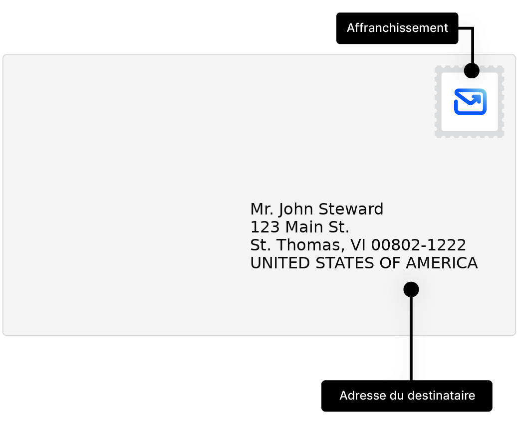 Apprenez à adresser et envoyer des lettres vers îlles Vierges (US), avec des exemples d'adresses et conseils pratiques.
