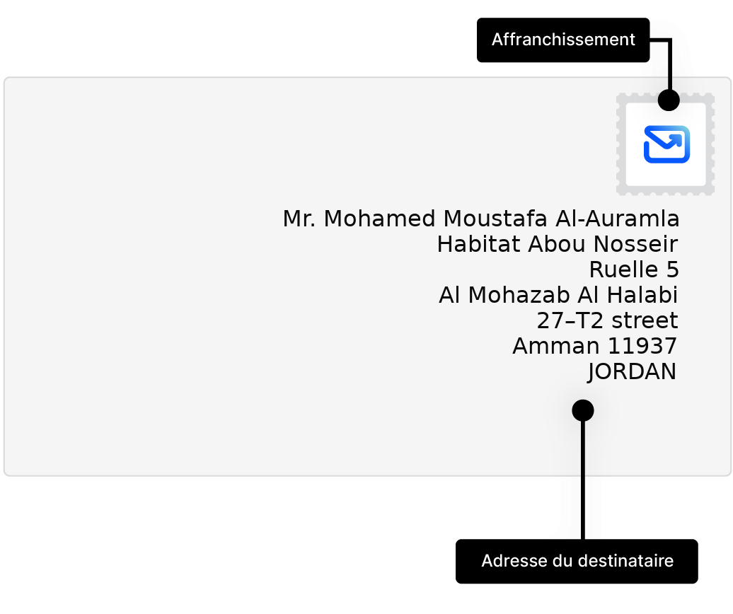 Apprenez à adresser et envoyer des lettres vers Jordanie, avec des exemples d'adresses et conseils pratiques.