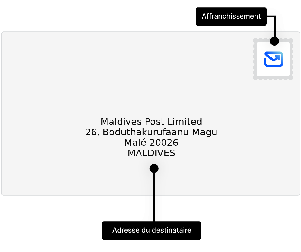Apprenez à adresser et envoyer des lettres vers Maldives, avec des exemples d'adresses et conseils pratiques.