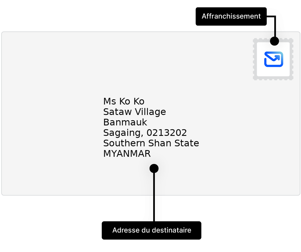 Apprenez à adresser et envoyer des lettres vers Myanmar, avec des exemples d'adresses et conseils pratiques.