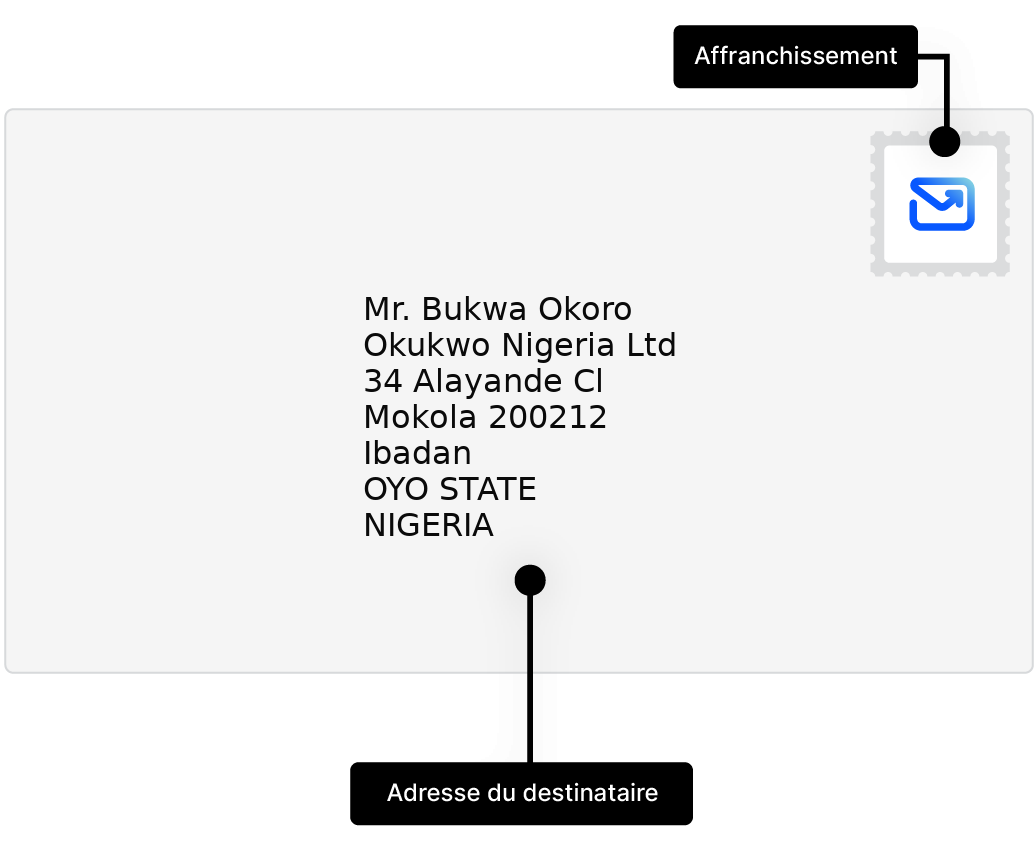 Apprenez à adresser et envoyer des lettres vers Nigeria, avec des exemples d'adresses et conseils pratiques.