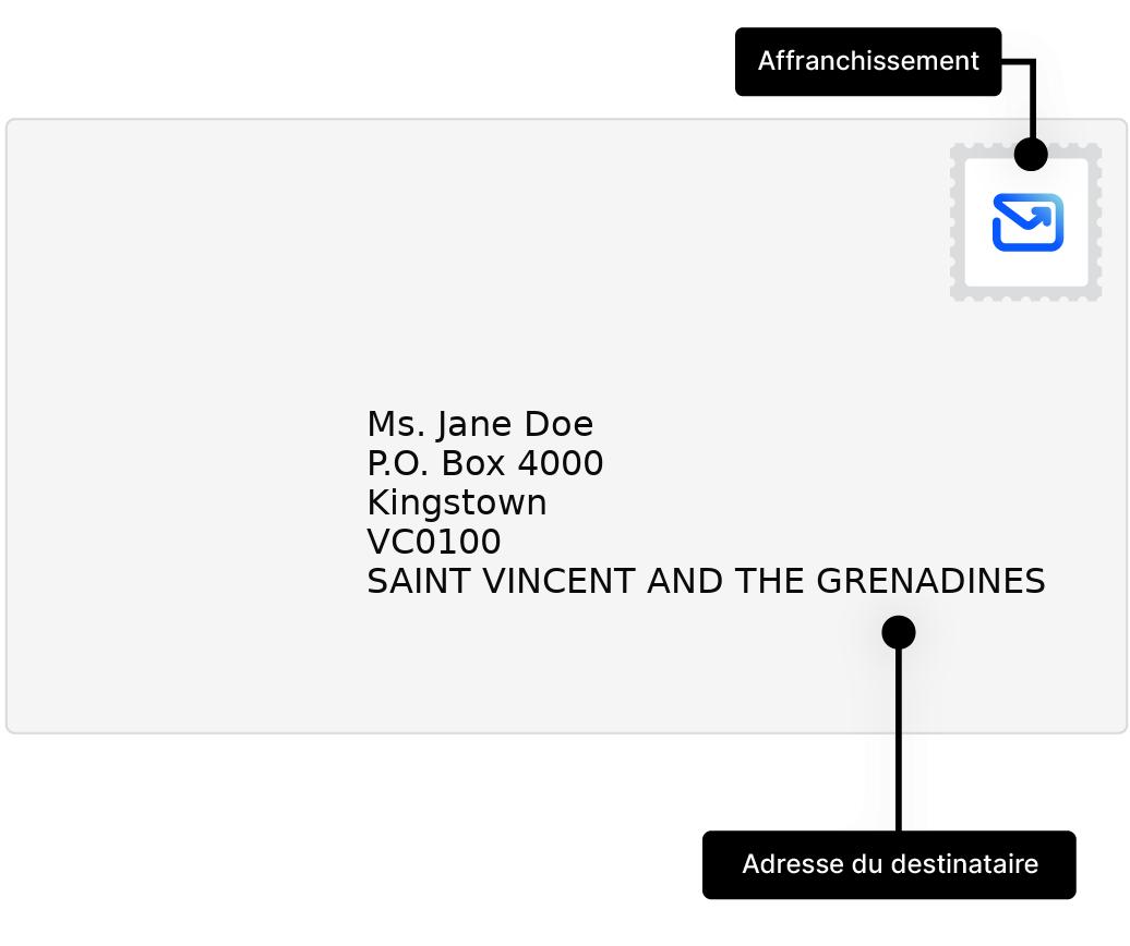Apprenez à adresser et envoyer des lettres vers St. Vincent et Grenadines, avec des exemples d'adresses et conseils pratiques.