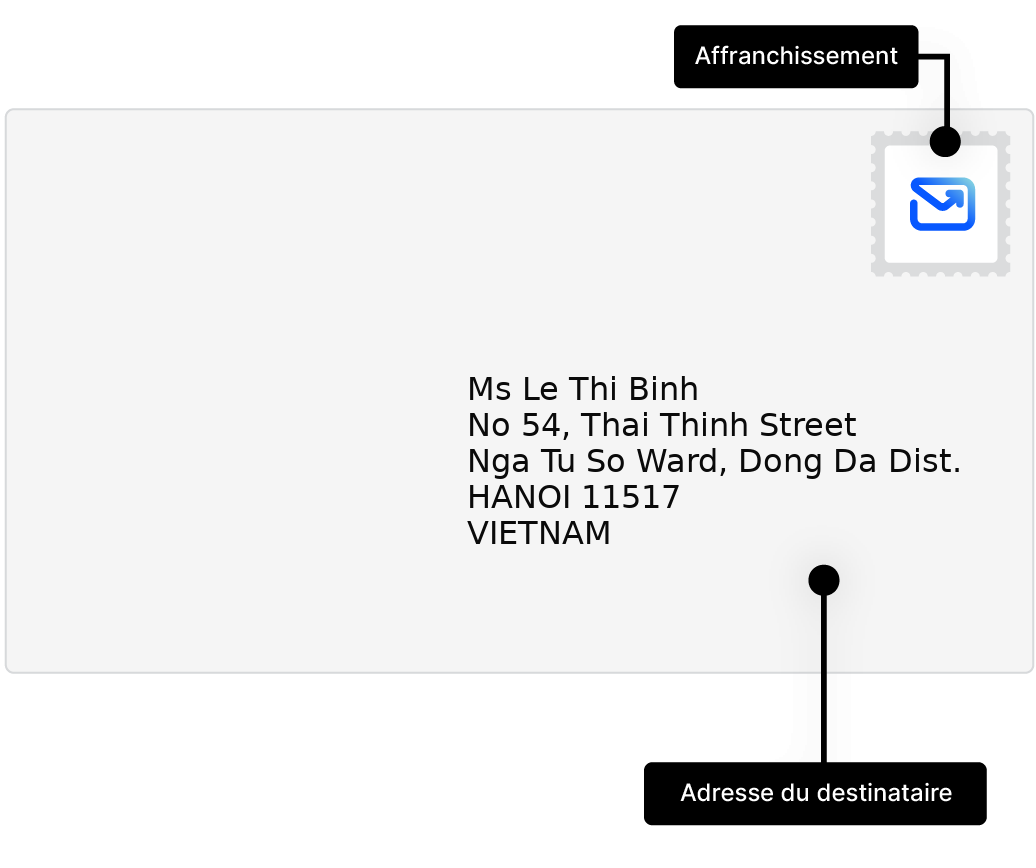 Apprenez à adresser et envoyer des lettres vers Vietnam, avec des exemples d'adresses et conseils pratiques.
