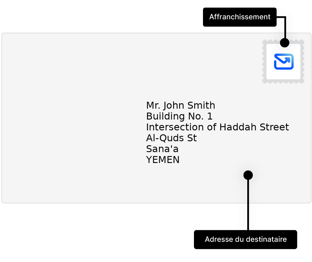 Apprenez à adresser et envoyer des lettres vers Yémen, avec des exemples d'adresses et conseils pratiques.