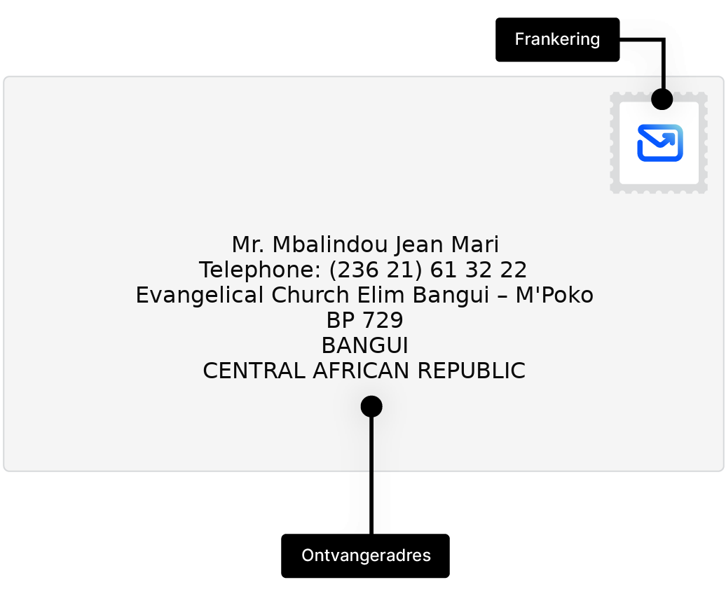 Leer hoe je brieven naar Centraal-Afrikaanse Republiek correct adresseert en verstuurt – met adresvoorbeelden en praktische tips.