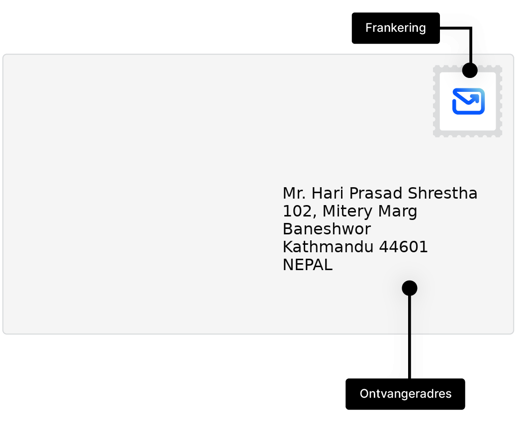 Leer hoe je brieven naar Nepal correct adresseert en verstuurt – met adresvoorbeelden en praktische tips.