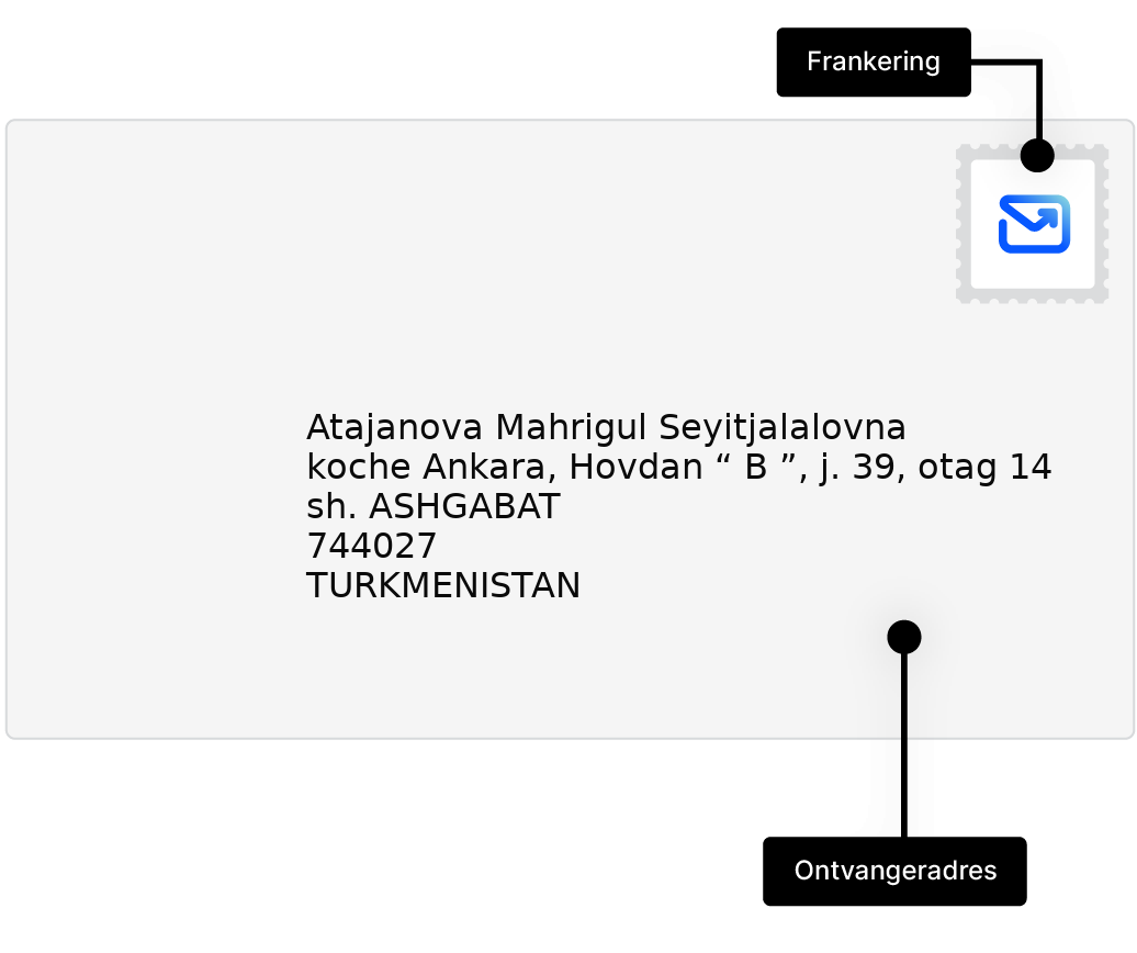 Leer hoe je brieven naar Turkmenistan correct adresseert en verstuurt – met adresvoorbeelden en praktische tips.