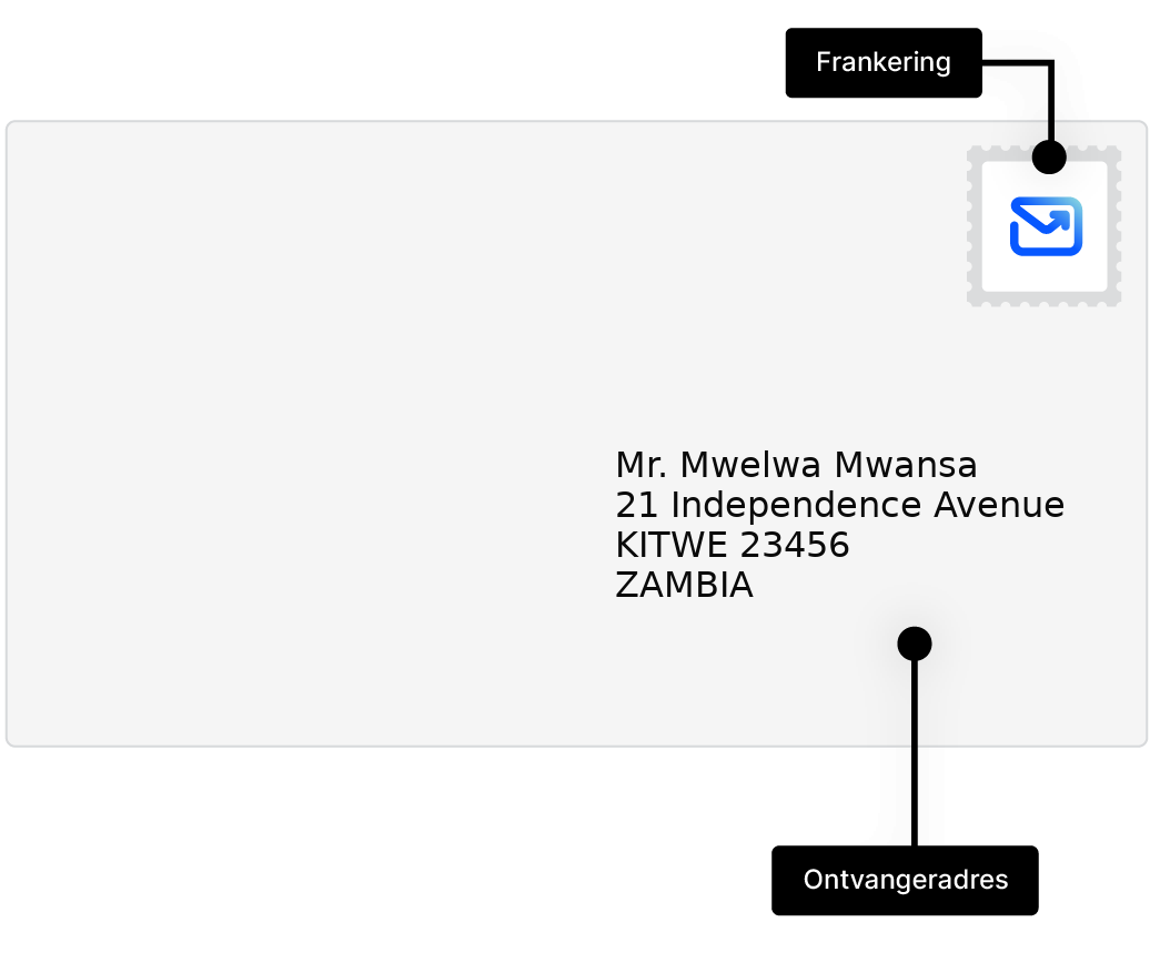 Leer hoe je brieven naar Zambia correct adresseert en verstuurt – met adresvoorbeelden en praktische tips.